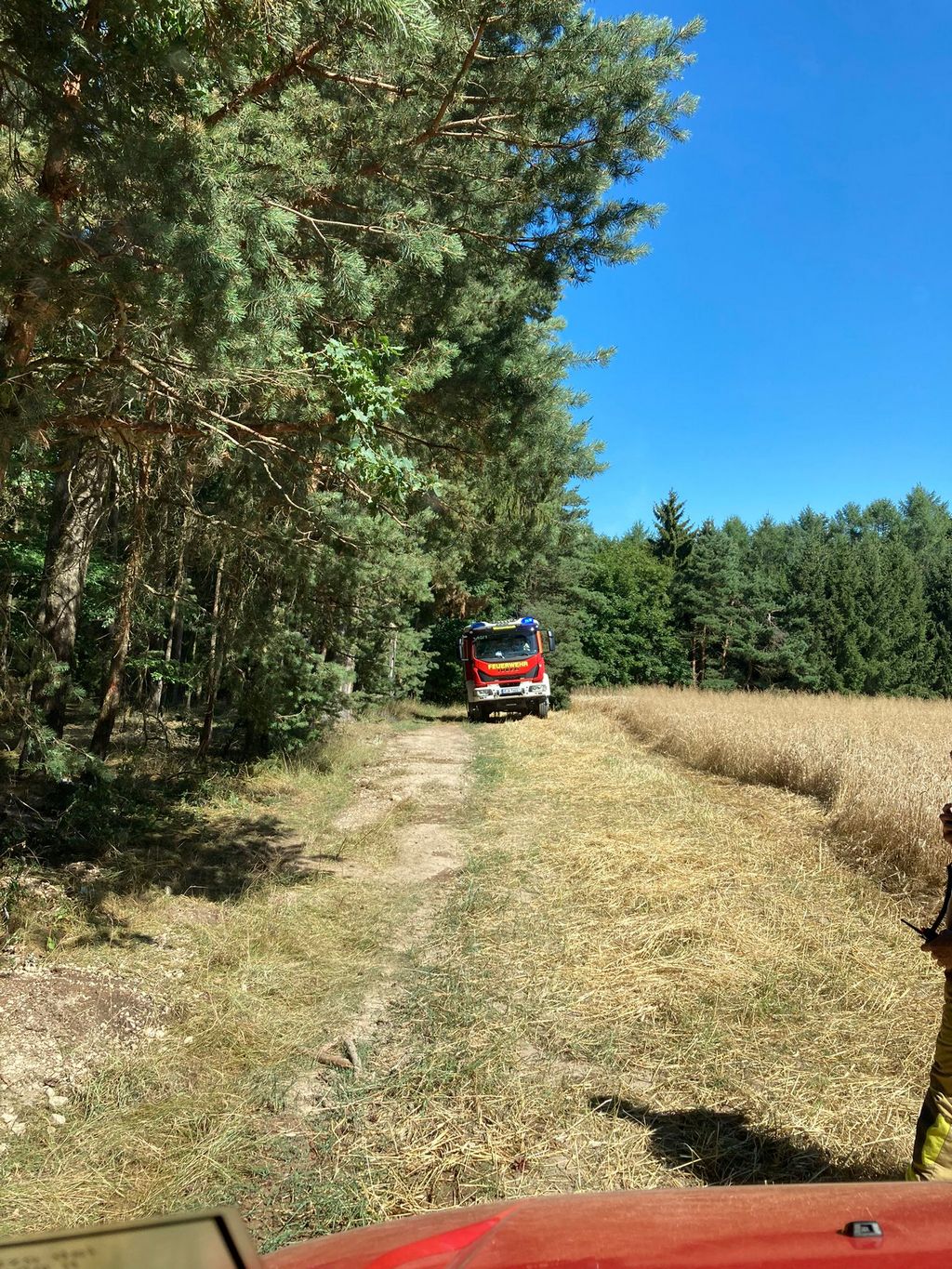 Von Wenzenbach aus war bereits auf der Anfahrt eine enorme Rauchentwicklung zu sehen. Vor Ort stellte sich die Lage so dar, dass in einer Senke ein an ein noch nicht abgeerntetes Feld grenzendes Waldstück in Brand stand, folglich wurden die Lösch- und Tanklöschfahrzeuge primär zur Verhinderung der Brandausbreitung eingesetzt.