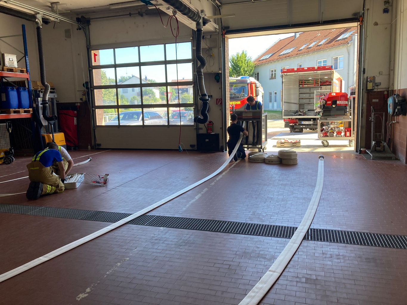 Parallel brachten sich das Wenzenbacher 55/1 zusammen mit dem 11/1 und Anhänger aus Grünthal zur Errichtung einer Schlauchstrecke beim Ziegenhof in Stellung, der Schlauchwagen aus Regenstauf wurde hier ebenfalls in Position gebracht.