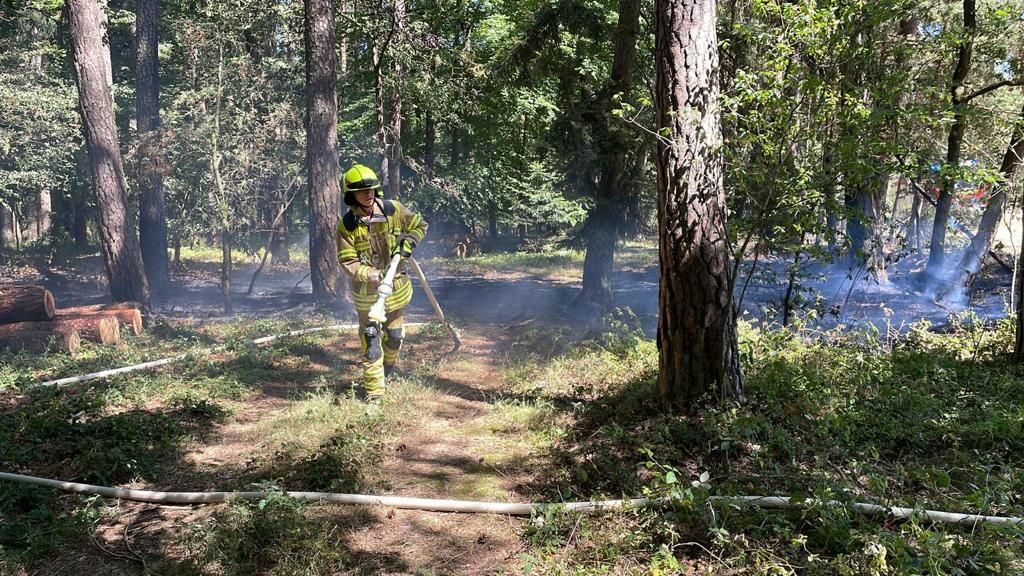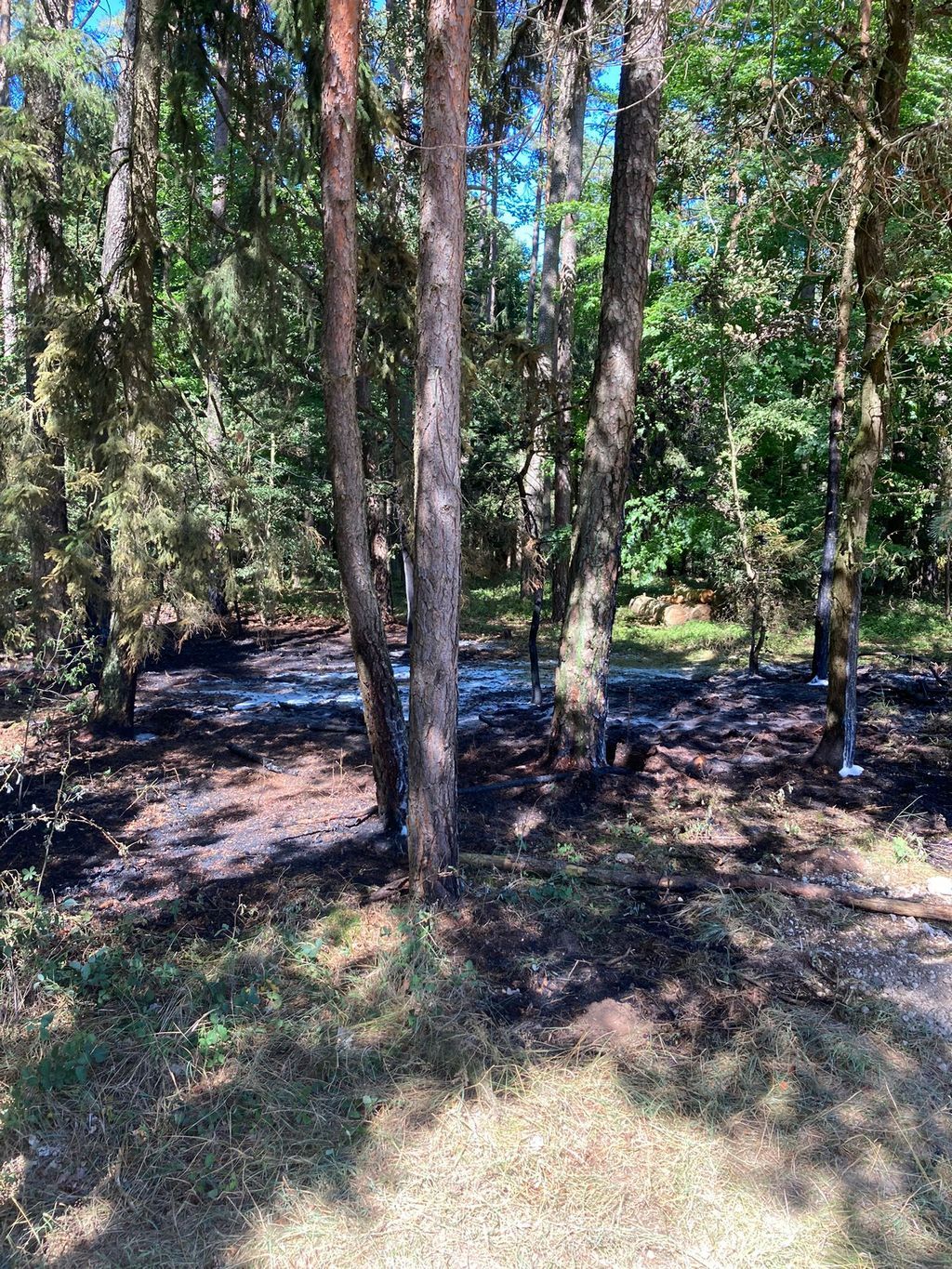 Der Bereich wurde abgelöscht und mit Netzmittel gewässert, um sicherzugehen, dass keine Glutnester im Boden verbleiben.