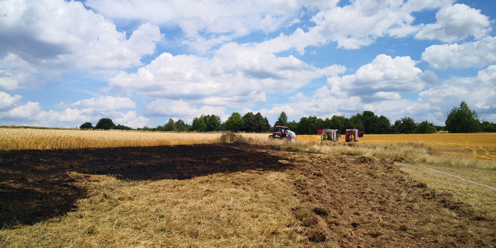 Von der örtlichen Einsatzleitung wurde dem HLF20 ein Einsatzabschnitt zugewiesen. Zusammen mit der Feuerwehr Grünthal begaben wir uns zu einem noch in Brand befindlichen Bereiches eines Stoppelfeldes.