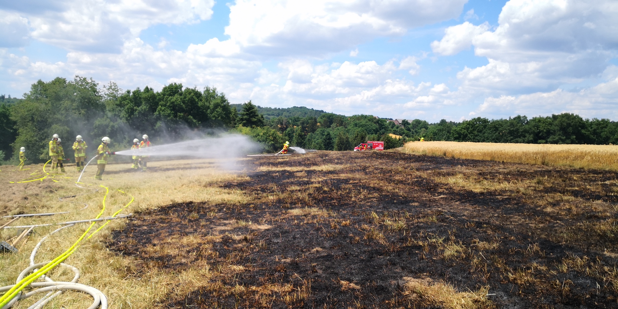 Durch den beherzten Einsatz der anwesenden Landwirte wurde bereits mit einem Grubber eine Schneise hergestellt, welche die weitere Ausbreitung verhinderte. Mit Wasser aus einem Gülleanhänger konnte ein Großteil des Feuers eingedämmt werden. Die Nachlöscharbeiten übernahmen wir mit den Grünthaler Kameraden.