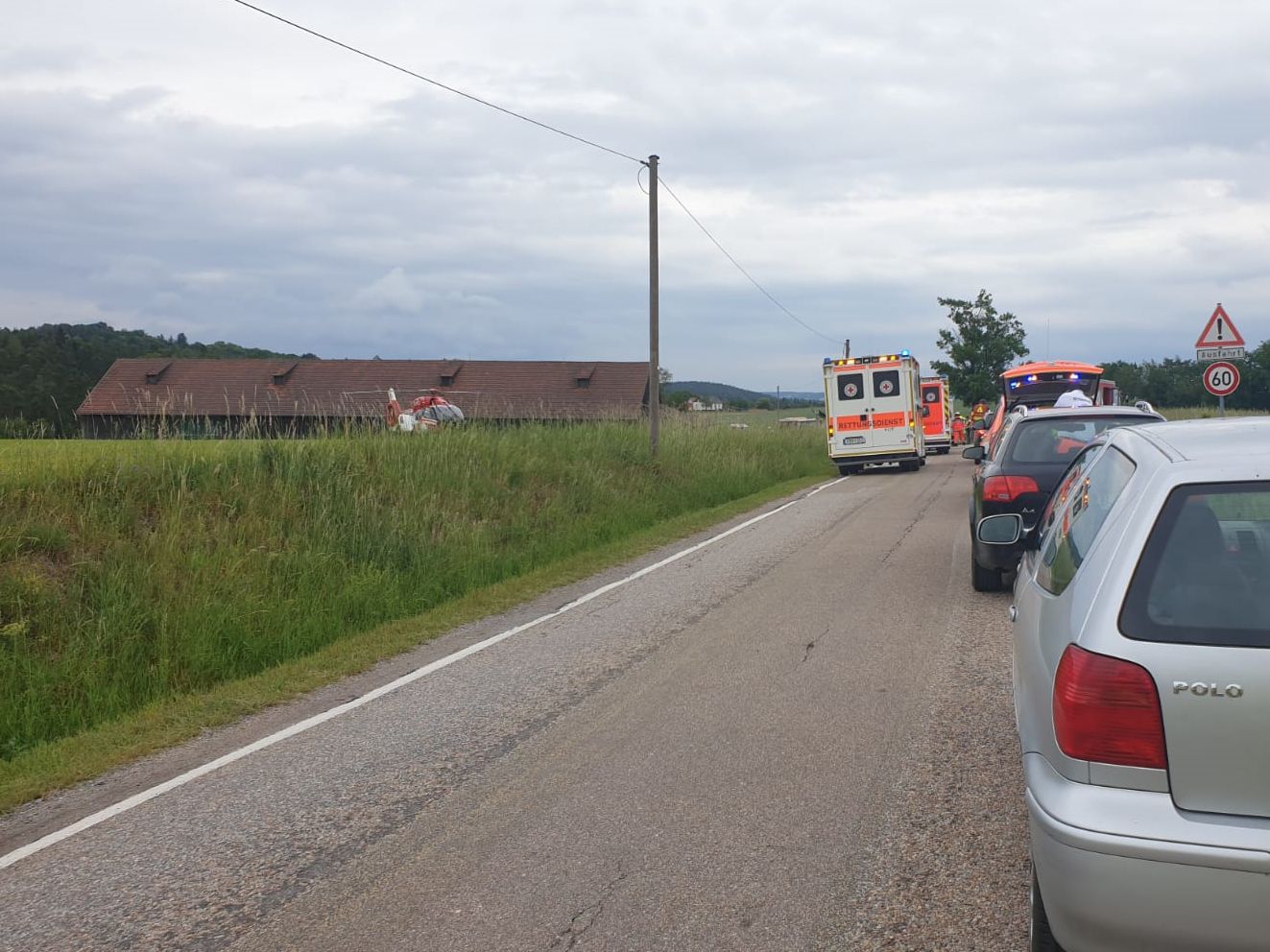 Die Feuerwehr Wenzenbach unterstützte die Arbeit des Rettungsdienstes. Außerdem richteten wir eine Vollsperrung der ST2150 auf Seite Thanhausen ein.