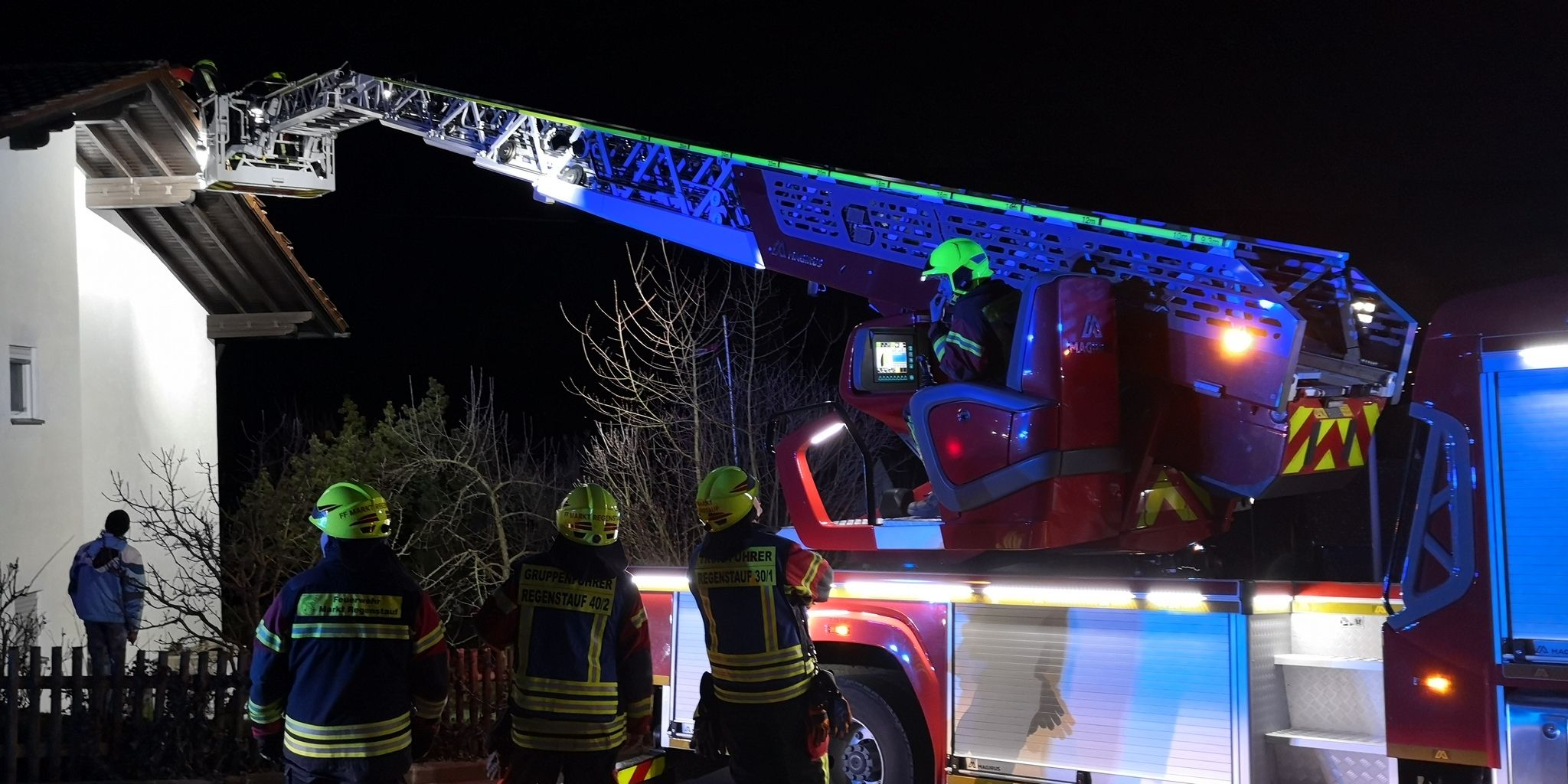 Am Abend forderten wir noch die Drehleiter aus Regenstauf an, zur Unterstützung bei einem abgedeckten Hausdach.