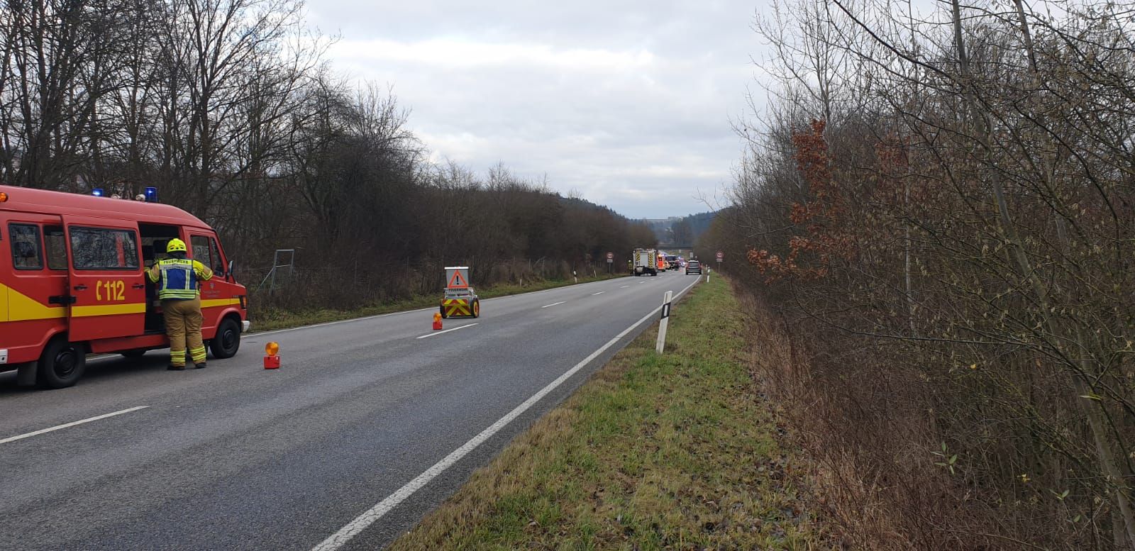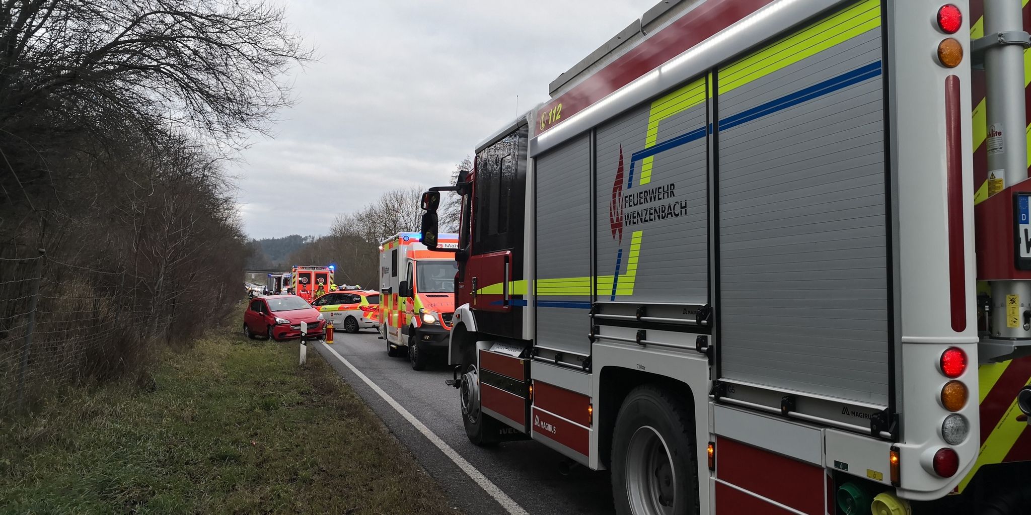 Auf der B16 in Höhe Wenzenbach, Dahlienweg kam ein PKW alleinbeteiligt von der Fahrbahn ab und blieb im Straßengraben liegen.