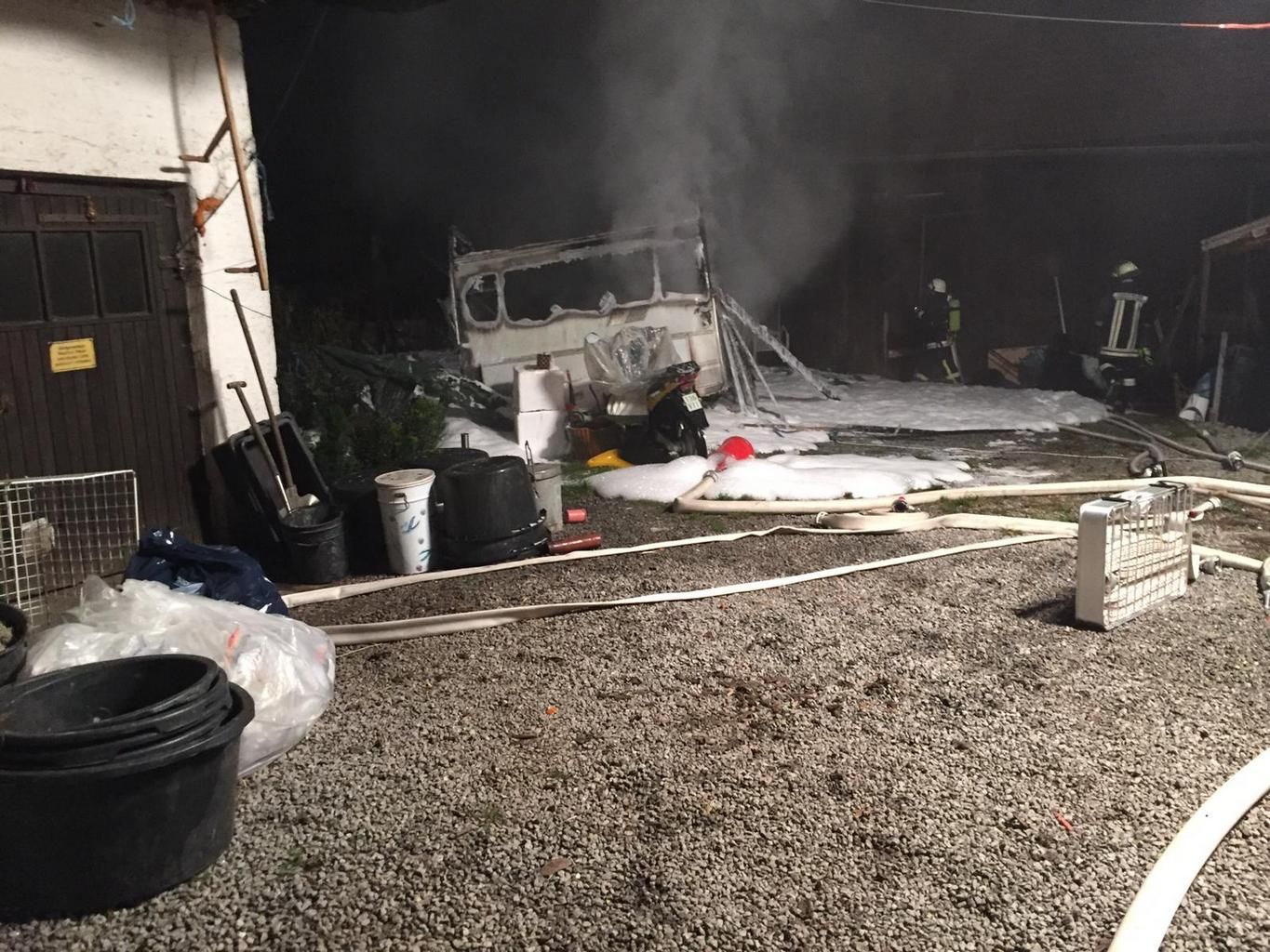 Die Bernhardswalder Kameraden konnten den Brand mit 2 C-Rohren und einem Schaumrohr schnell unter Kontrolle bringen und bereits nach rund 15 Minuten "Feuer aus" vermelden.