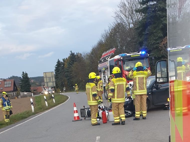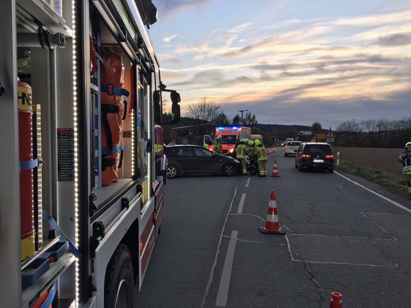 Hier sind ein PKW und ein Motorrad kollidiert.