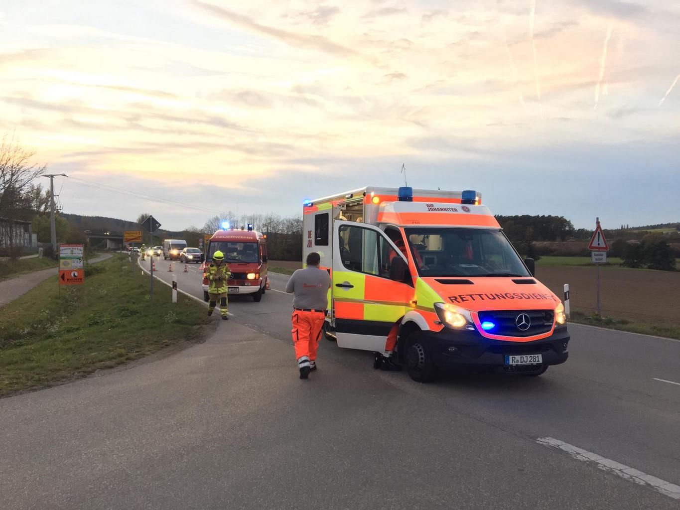 Der Rettungsdienst und Ersthelfer haben sich bereits um die Patienten gekümmert, wir haben bei der Versorgung mit einem unserer Sanitäter unterstützt, die Unfallstelle abgesichert und austretendes Benzin gebunden.
