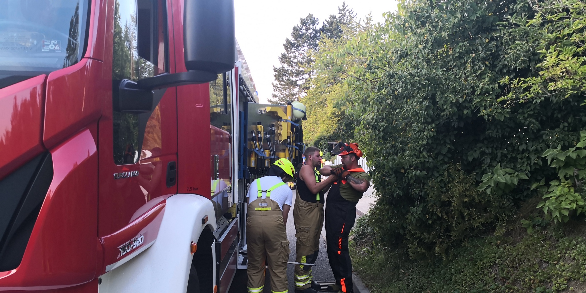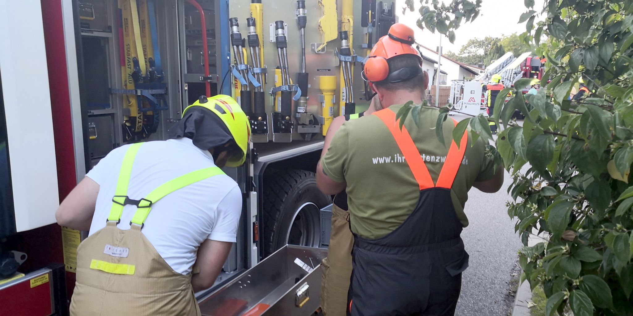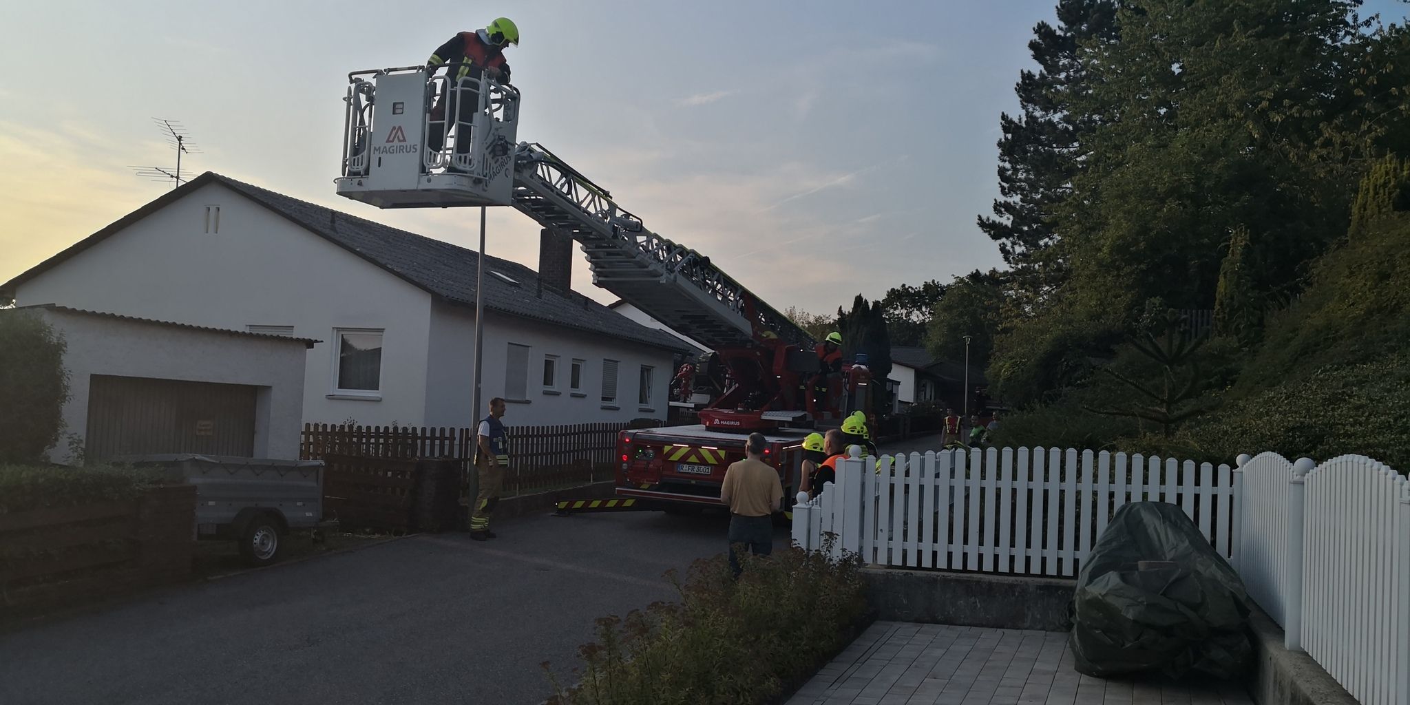 Am Abend des 28. August wurden wir in den Eichenweg gerufen. Dort drohte ein Baum auf ein Wohnhaus zu fallen.