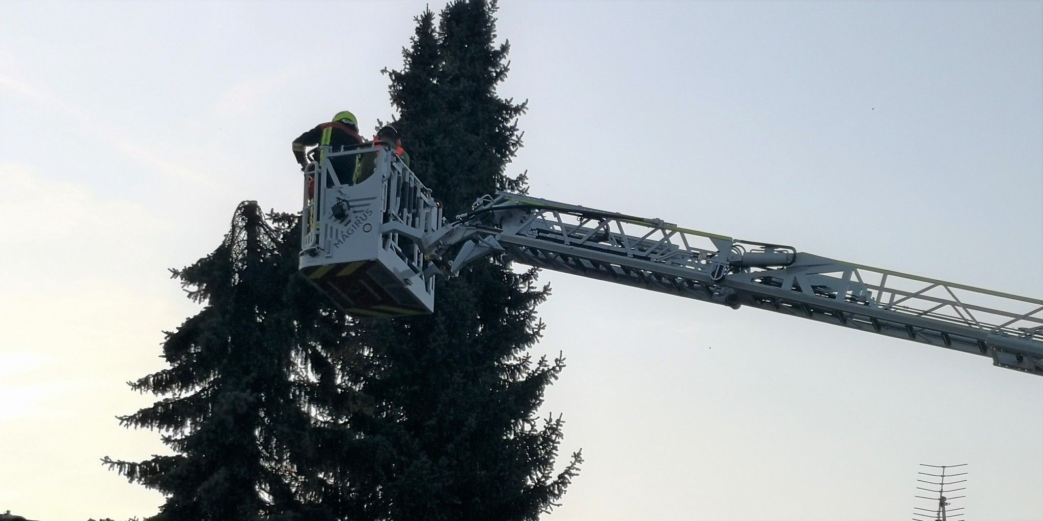 Zusammen mit der Drehleiter aus Regenstauf wurde der Baum von oben nach unten Stück für Stück geschnitten und so die Gefahr beseitigt.