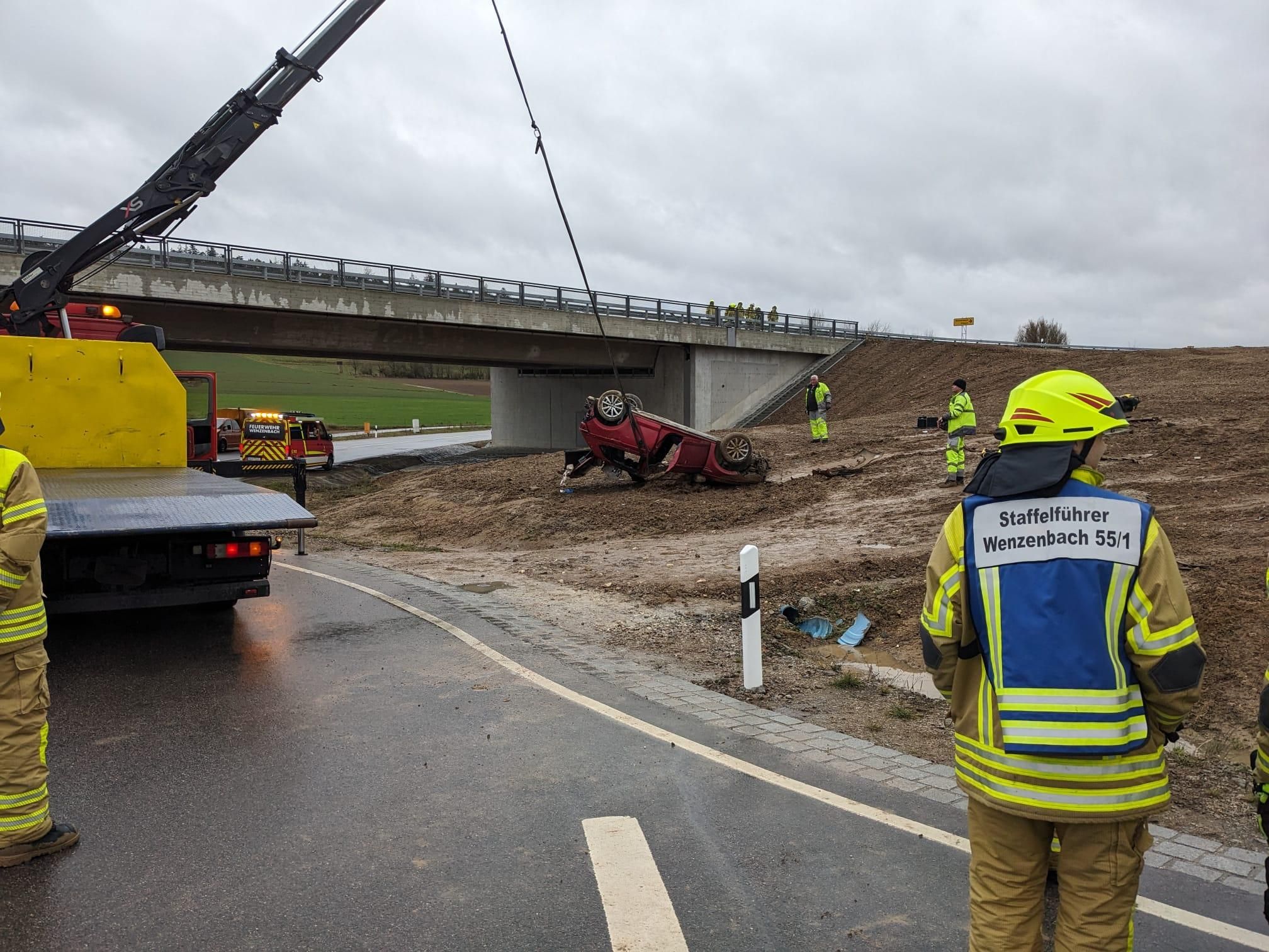 Die Verkehrssicherung auf den angrenzenden Straßen – Irlbach, Wenzenbach, Probstberg und B16 – wurde von den Einsatzkräften der drei Feuerwehren übernommen. Nach der Bergung des Fahrzeugs konnte die Einsatzstelle wieder freigegeben werden.