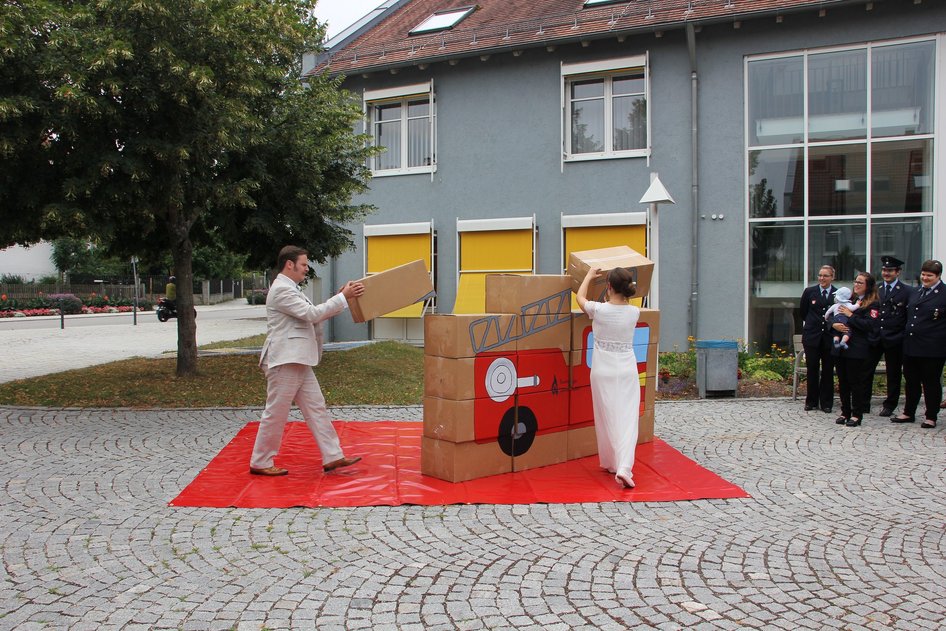 Gemeinsam mussten sie noch ein Feuerwehr-Puzzle zusammenbauen und anschließend wurden sie mit einem Feuerwehr-Autokorso durchs Dorf begleitet.