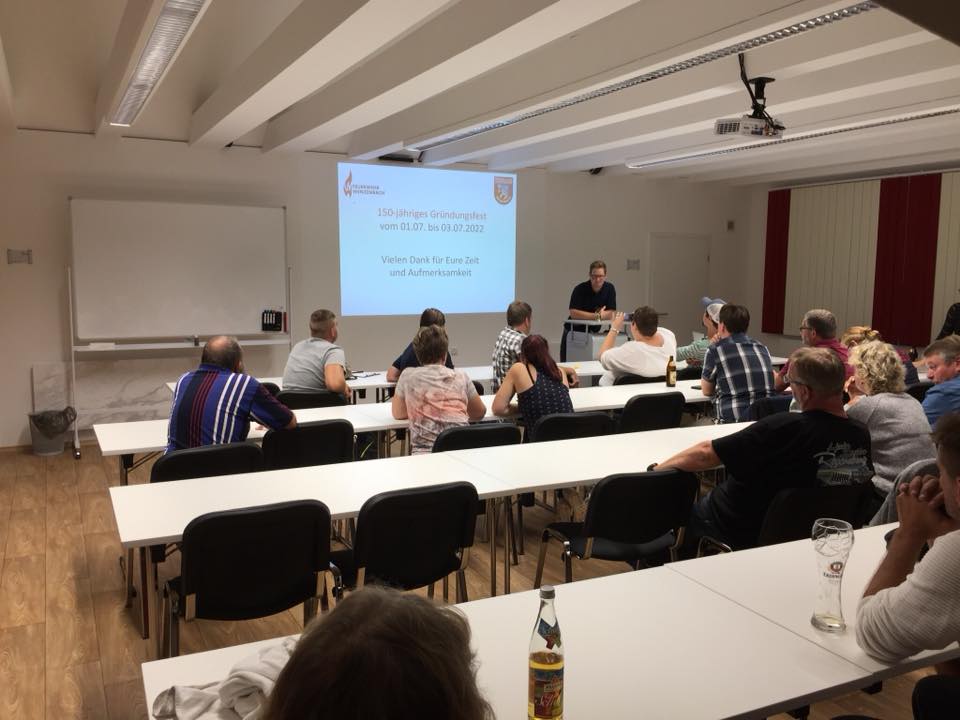 Startschuss: An zwei Terminen wurden die Vereinsmitglieder zum Infogespräch eingeladen. Thema: 150 Jahre FF Wenzenbach. Vom 01. bis 03. Juli 2022 wird das Vereinsjubiläum gefeiert. Dazu stellten die beiden Festleiter ihr Konzept vor und nahmen dankbar Ideen und Hinweise von den Mitgliedern auf.