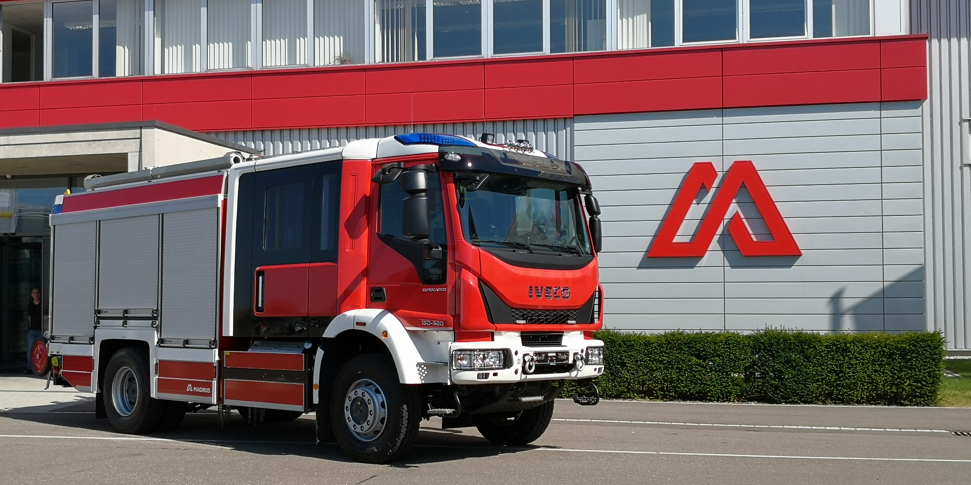 Im Vorfeld machte sich ein 9-köpfiges Team auf den Weg nach Ulm in das Magirus Werk zur Abnahme und Einweisung. Das Fahrzeug wurde ausführlich begutachtet, außerdem erhielten wir eine Schulung in der uns nochmal alle Funktionen der Pumpe nähergebracht wurde. Nach anstrengenden zwei Tagen wurden wir dann herzlichst am Gerätehaus empfangen.