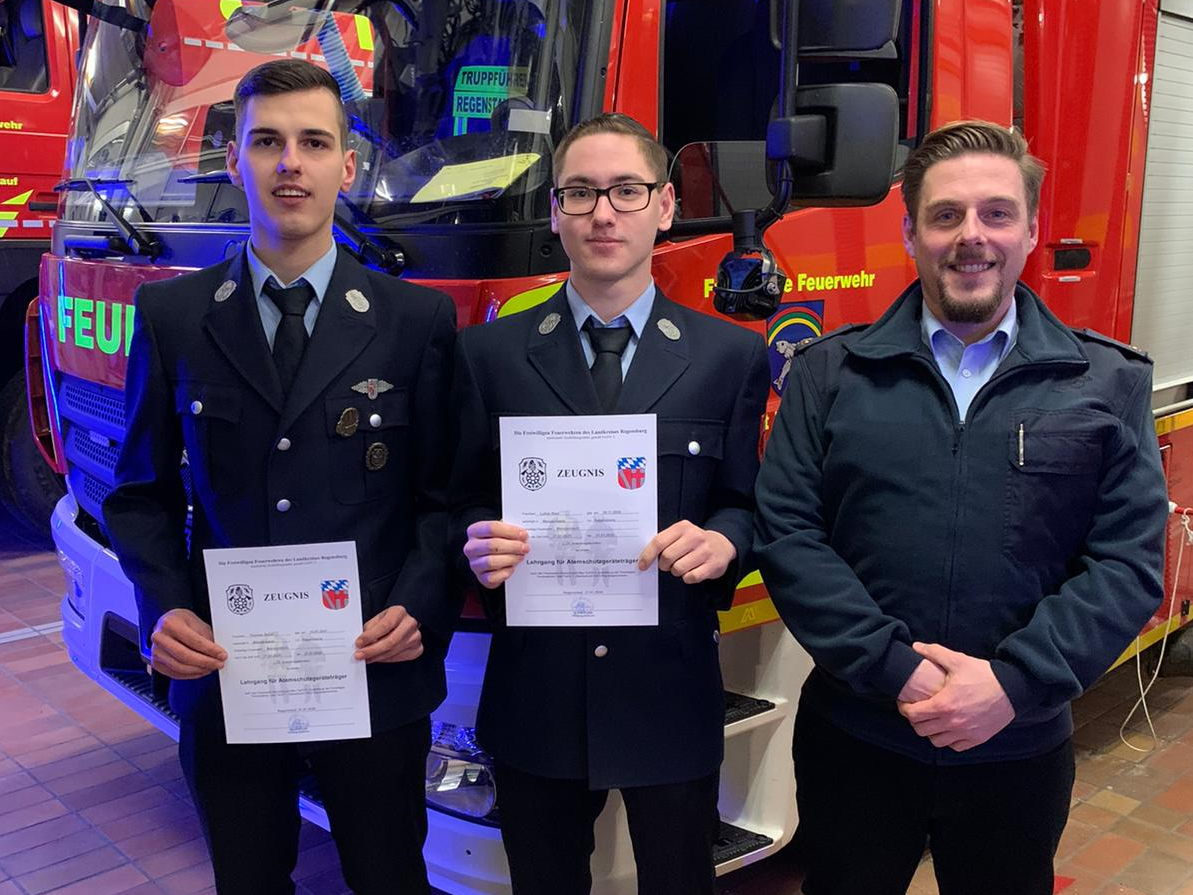 Am Dienstag, den 21. Januar 2020 konnten unsere zwei Kameraden Beer Lukas und Bauer Thomas erfolgreich den Lehrgang zum Atemschutzgeräteträger in Regenstauf abschliessen.
