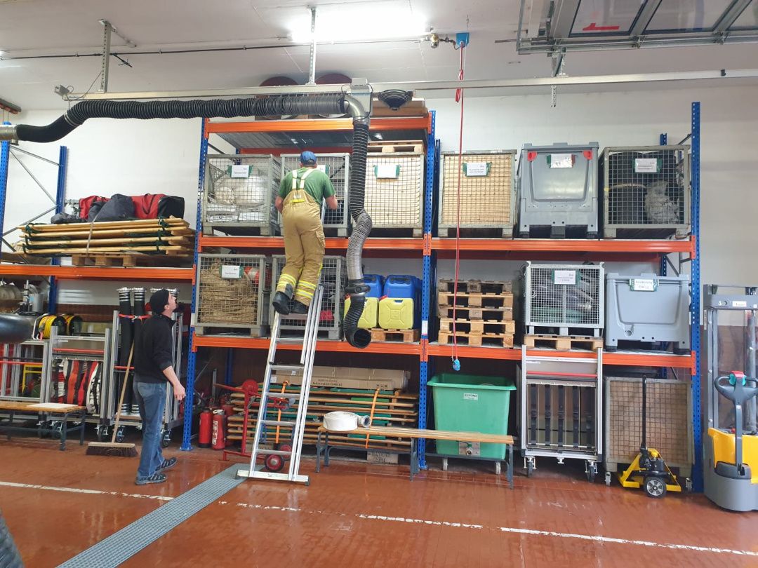 Doch nicht nur Junghanns hat viel zu tun - auch wir müssen noch einige Vorbereitungen treffen. Denn mit dem neuen Fahrzeug ändert sich auch die Stellplatzsituation wodurch noch einige Umbauten am Gerätehaus nötig sind. Dazu wurde bereits Vorarbeit in Form von Arbeitseinsätzen der Aktiven geleistet.
