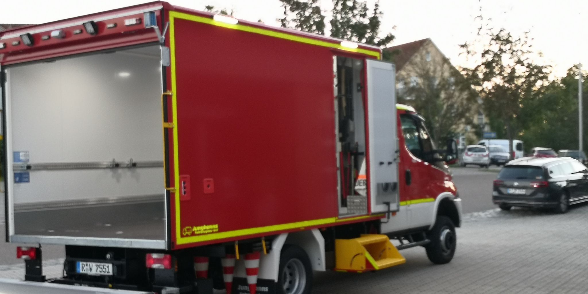 Am Abend des 26.August war es endlich soweit; Unser Beschaffungsteam hat unser neues GW-L1 vom Aufbauhersteller Junghanns in Hof abgeholt. Gegen 18:00 traf es am Gerätehaus ein und wurde von der Mannschaft in Empfang genommen.