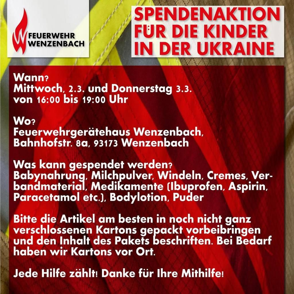 Die gegenwärtige Krise in der Ukraine veranlasste den RKT Rettungsdienst e.V, den RKT Rettungsdienst OHG, der A.i.B. Hero GmbH und der Alfred Böhm Spedition zu einer aussergewöhnlichen Aktion, an der sich u.a. auch die Feuerwehr Wenzenbach beteiligte.