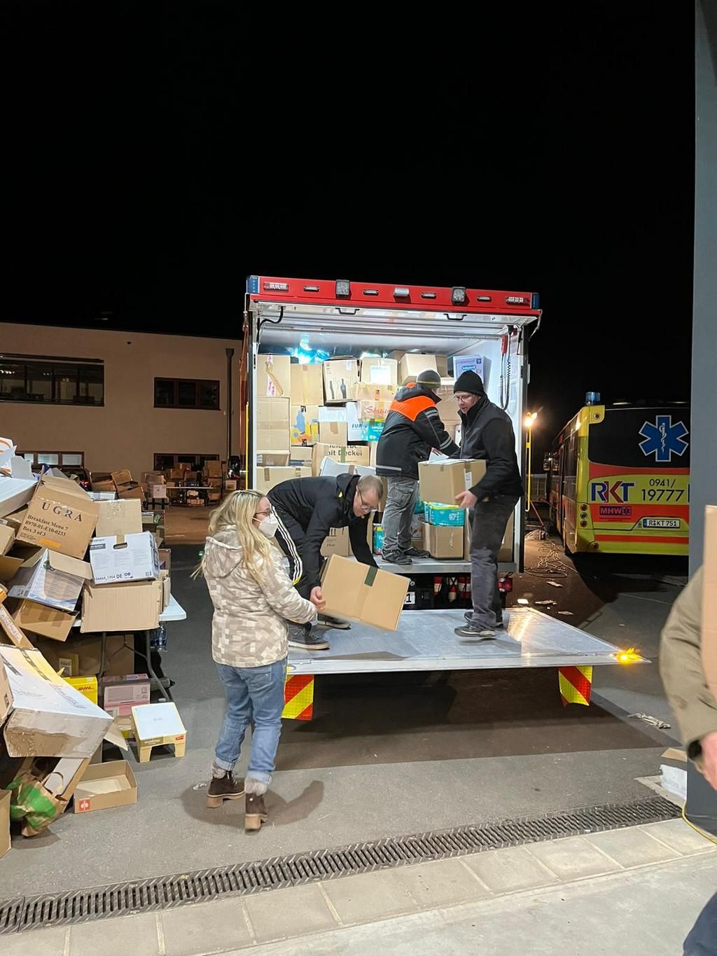 Am späten Donnerstag Abend stand dann noch der Abtransport der Waren zur zentralen Sammelstelle des RKT nach Auberbach in der Oberpfalz an. Zwei Bernhardswalder Kameraden unterstützten uns hierbei als Fahrer. Gegen 01.30 waren wir erschöpft, aber glücklich wieder am Gerätehaus zurück und konnten unseren Beitrag erfolgreich abschliessen.