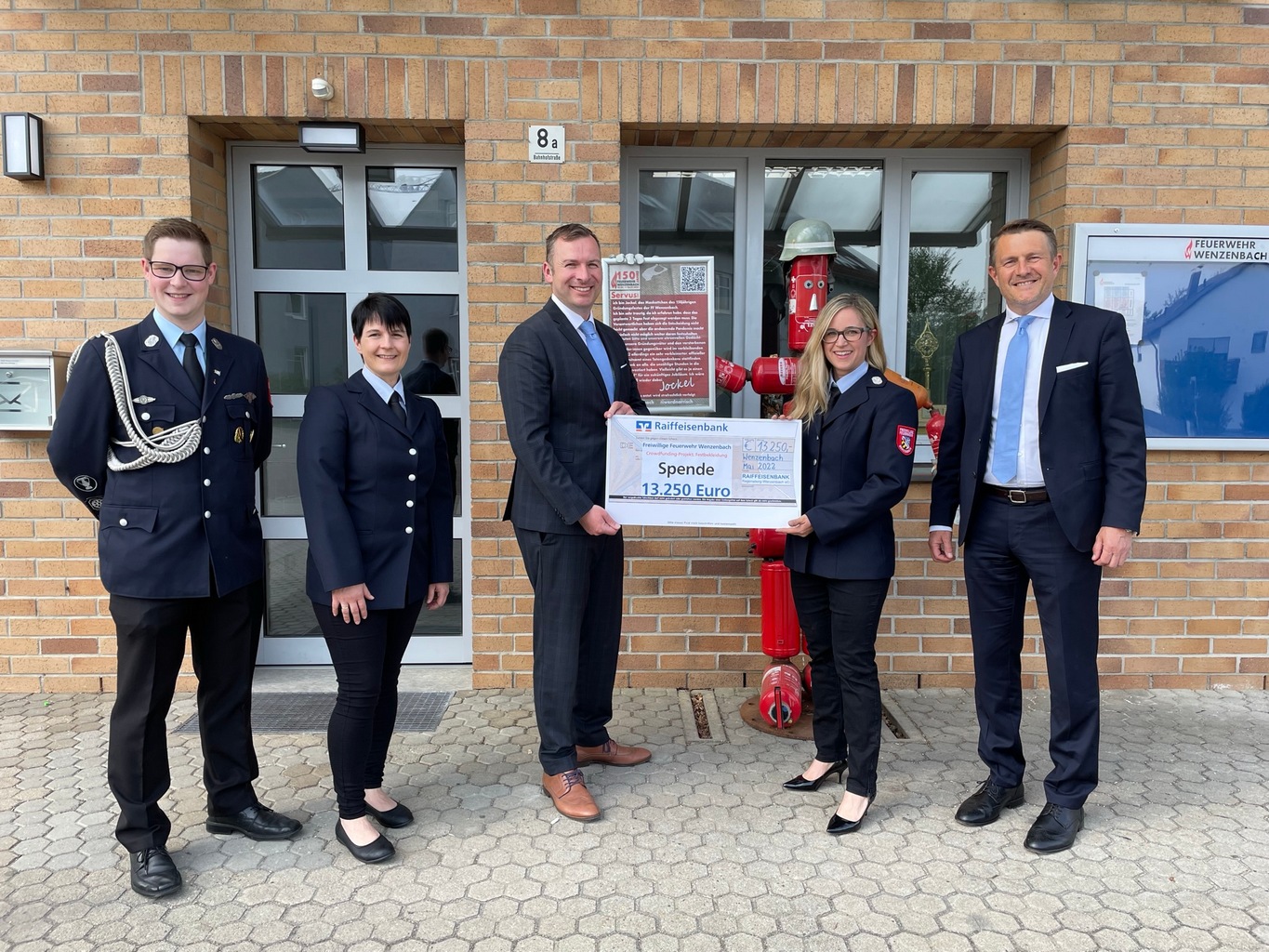 Trotz verkleinertem Fest benötigen die 31 Festdamen und Festkinder eine einheitliche Ausstattung, um die Wehr aus Wenzenbach zusätzlich landkreisweit bei anderen Festivitäten repräsentieren zu können. Der finanzielle Aufwand der Festbekleidung ist nicht zu unterschätzen und so ist die Feuerwehr mit der Bitte um finanzielle Unterstützung auf die Raiffeisenbank in Wenzenbach zugekommen.