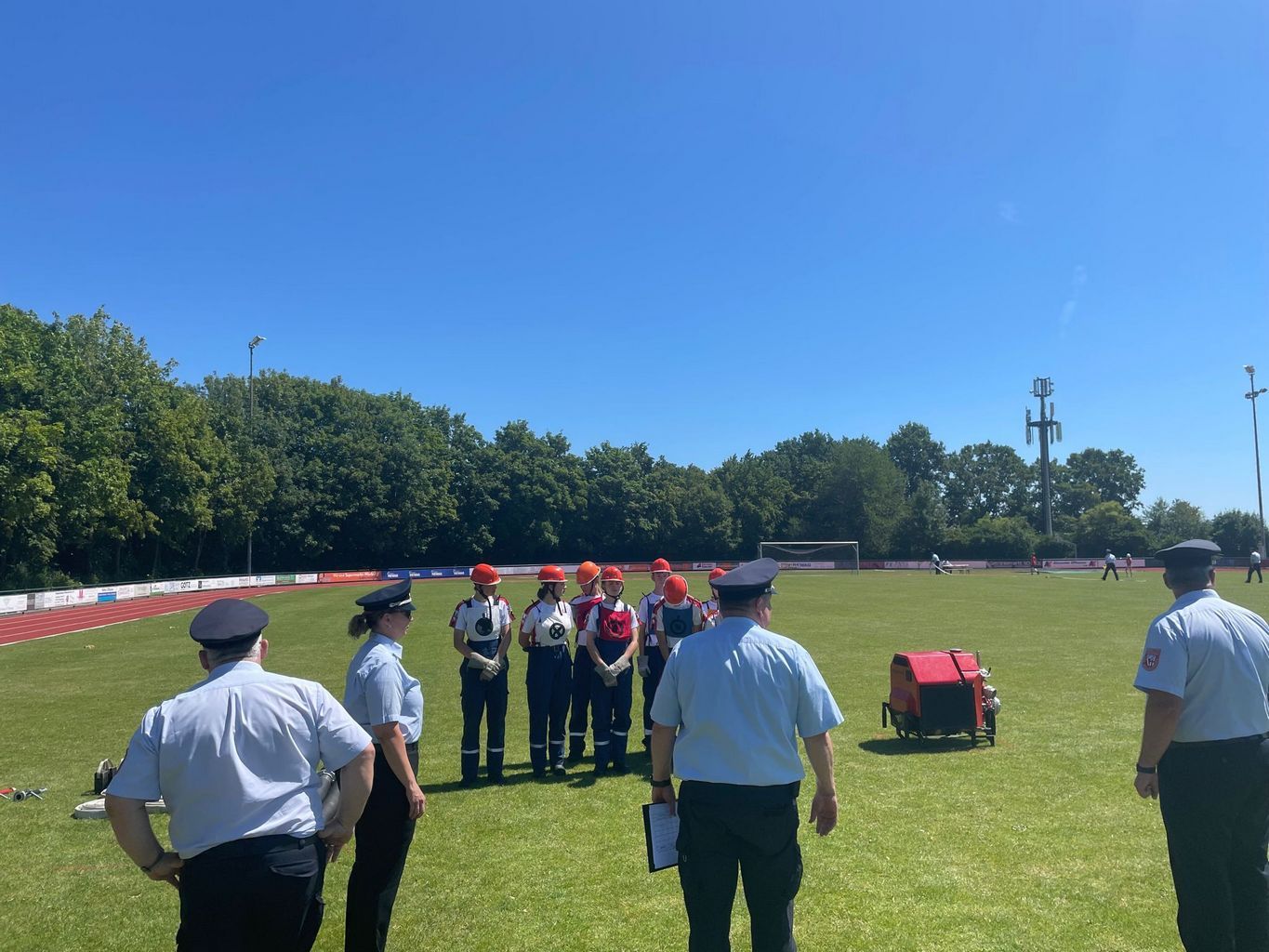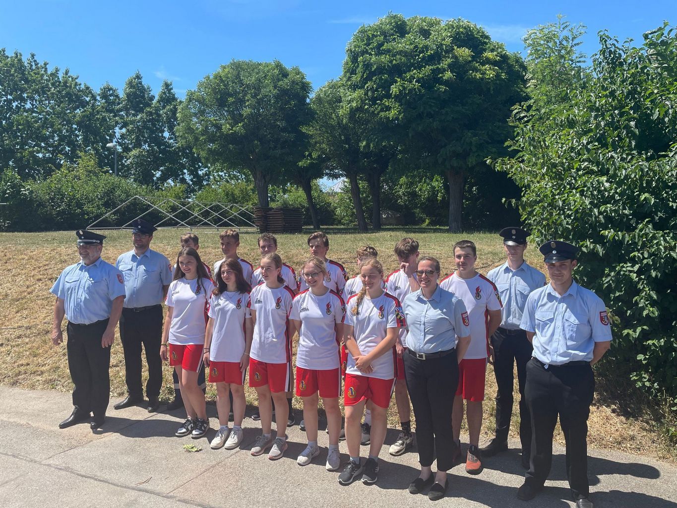 Am Samstag, den 15. Juli 2023 nahmen gut zwei Wochen intensives Üben ein glückliches Ende und zwei Teilnehmer aus den Reihen unserer Jugendfeuerwehr erhielten das höchste Abzeichen: die "Deutsche Jugendleistungsspange".