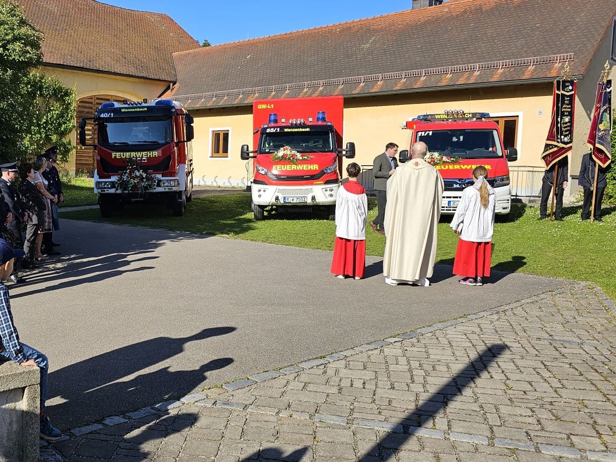 Am späten Nachmittag richteten wir dann das diesjährige Floriansfest aus. Aus unserem mittlererweile komplett erneuertem Fuhrpark erhielten drei Fahrzeuge den kirchlichen Segen. Während sich der Festzug in Richtung Feuerwehrhaus in Bewegung setzte, ertönten plötzlich unsere Melder sowie die Sirene: wir wurden zu einer akuten Wohnungsöffnung gerufen. Obwohl sich ein Teil der Mannschaft bei den Feierlichkeiten von Andreas, ein weiterer Teil beim Festzug sowie bei dessen Verkehrsabsicherung gebunden waren, konnte auch der Einsatz noch abgearbeitet werden.