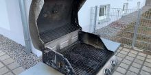 Brennender Gasgrill auf Balkon
