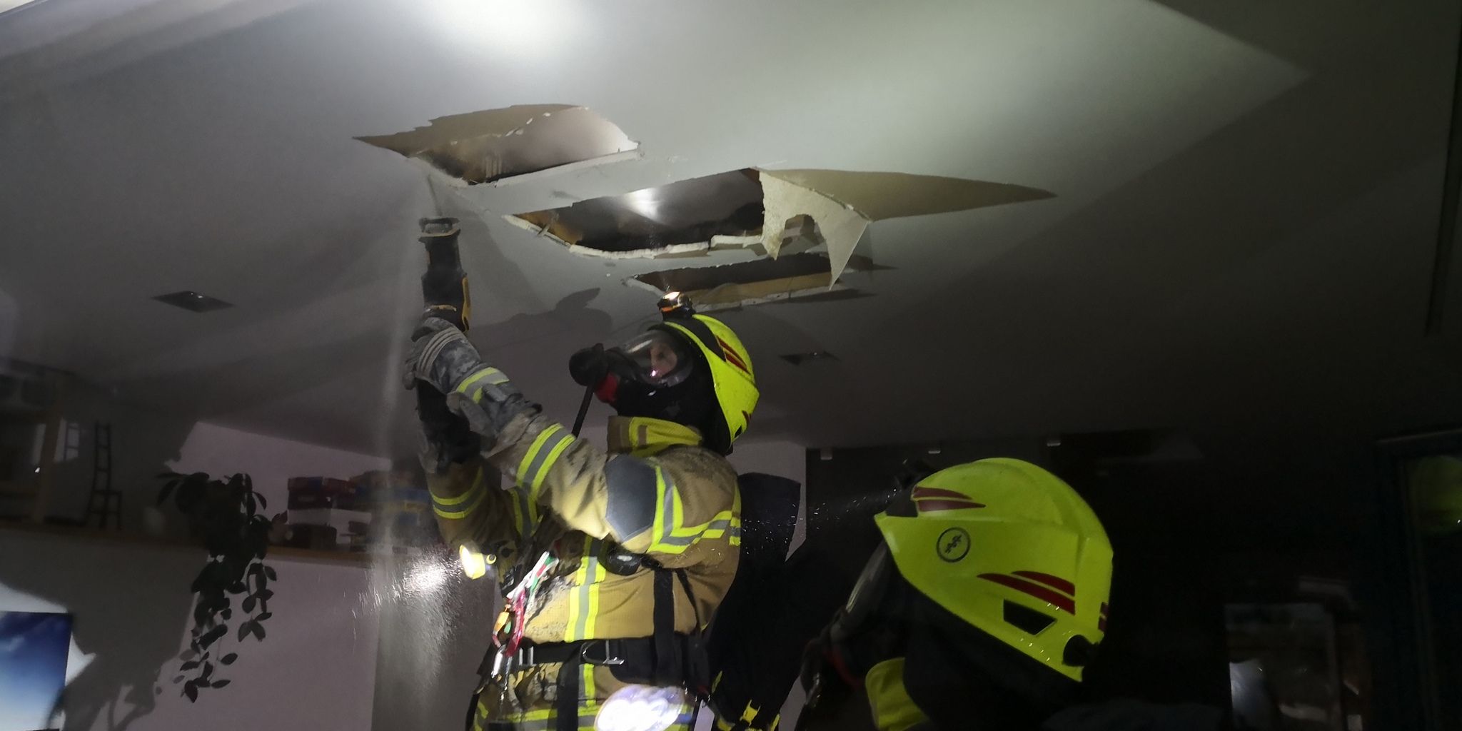 Nach einem technischen Defekt hatte sich ein Schmorbrand an einem Trafo für Deckeneinbauleuchten gebildet, der sich in der Zwischendecke im Erdgeschoss auszubreiten begann.