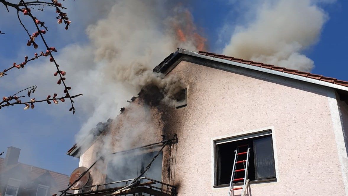 Das Feuer brach im Wohnzimmer aus und breitete sich auf den Balkon und den Dachstuhl aus. Der Balkon stand bei unserem Eintreffen bereits in Vollbrand.