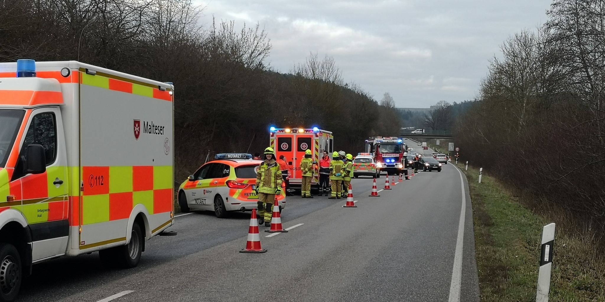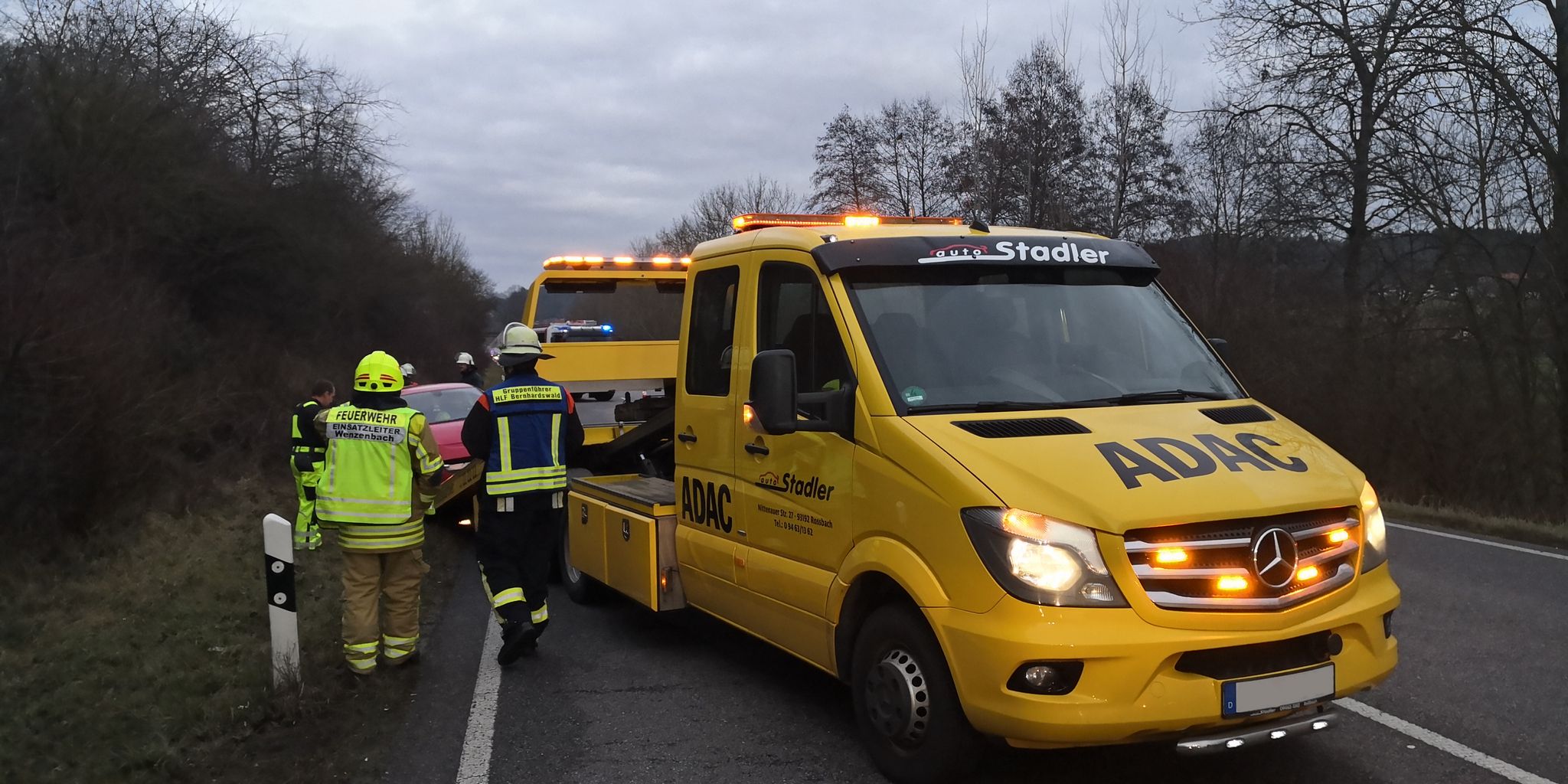Auf der B16 in Höhe Wenzenbach, Dahlienweg kam ein PKW alleinbeteiligt von der Fahrbahn ab und blieb im Straßengraben liegen.