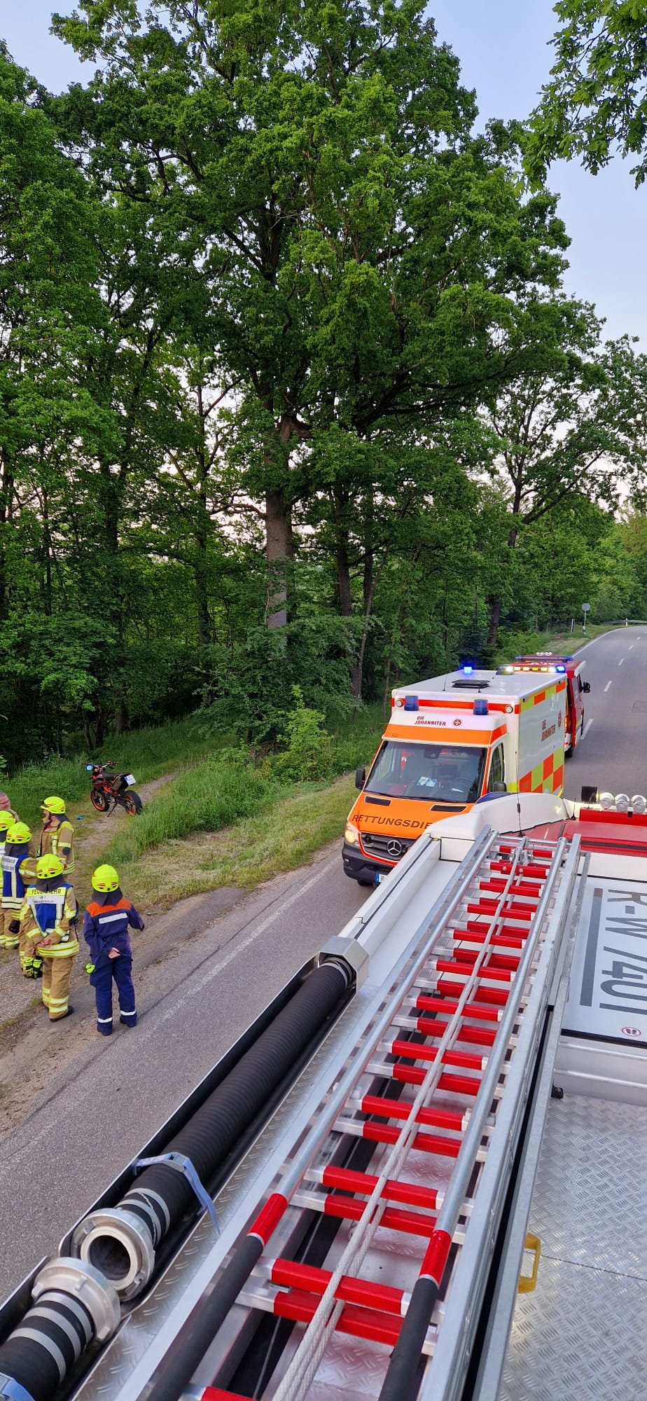 Unsere Kräfte übernahmen die Erstversorgung des Patienten bis zum Eintreffen des Rettungsdienstes und unterstützten die RTW-Besatzung im weiteren Verlauf, ausserdem erstellten wir die Verkehrsabsicherung.