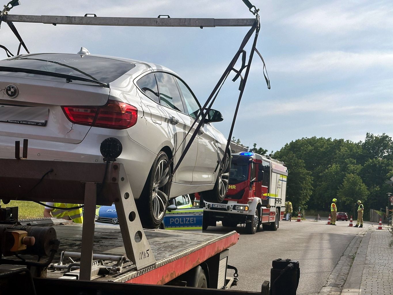 Wir richteten eine Umleitung über die Bahnhofstraße ein und befreiten die Fahrbahn von Trümmerteilen und ausgelaufenen Betriebsstoffen.
