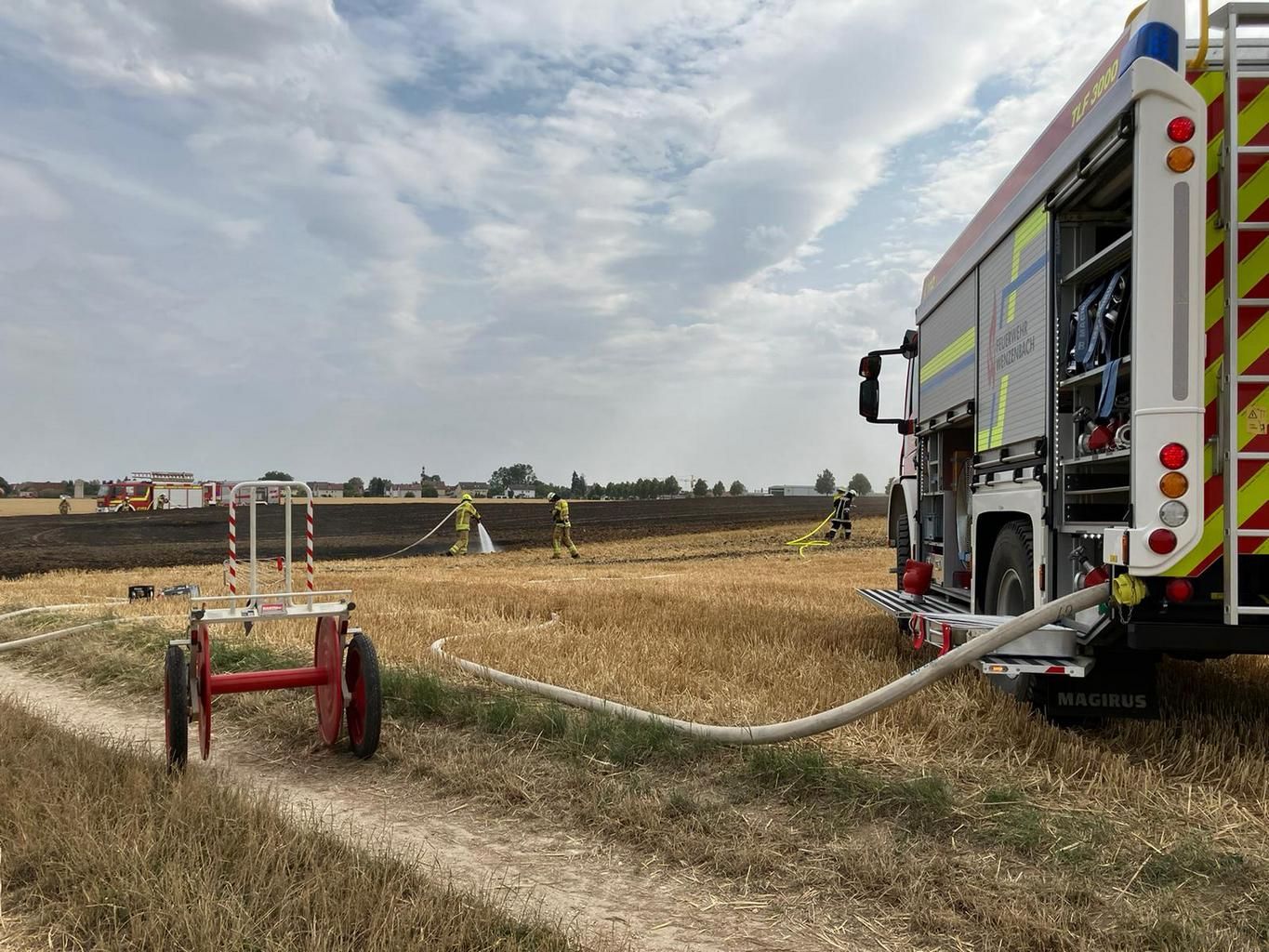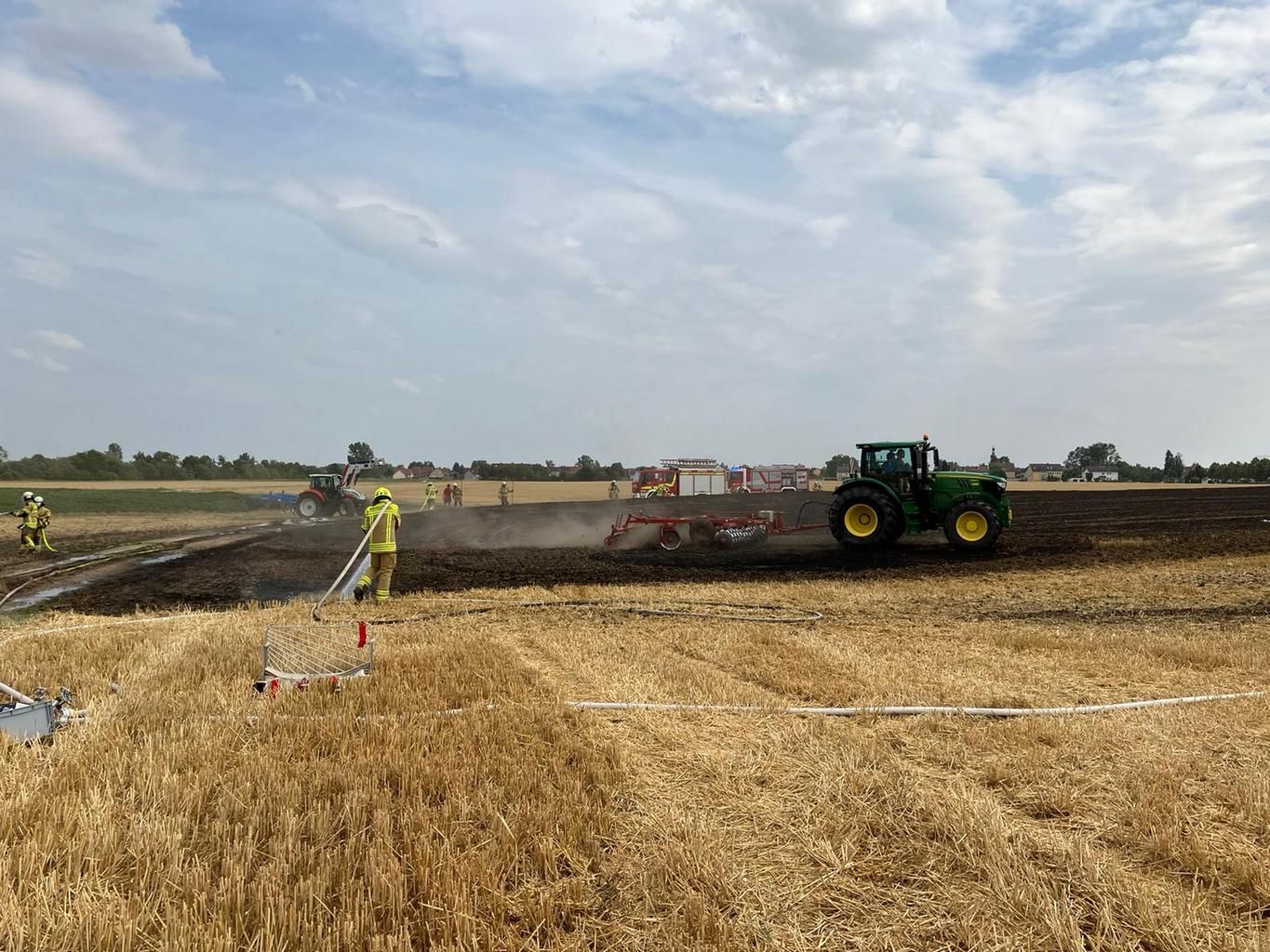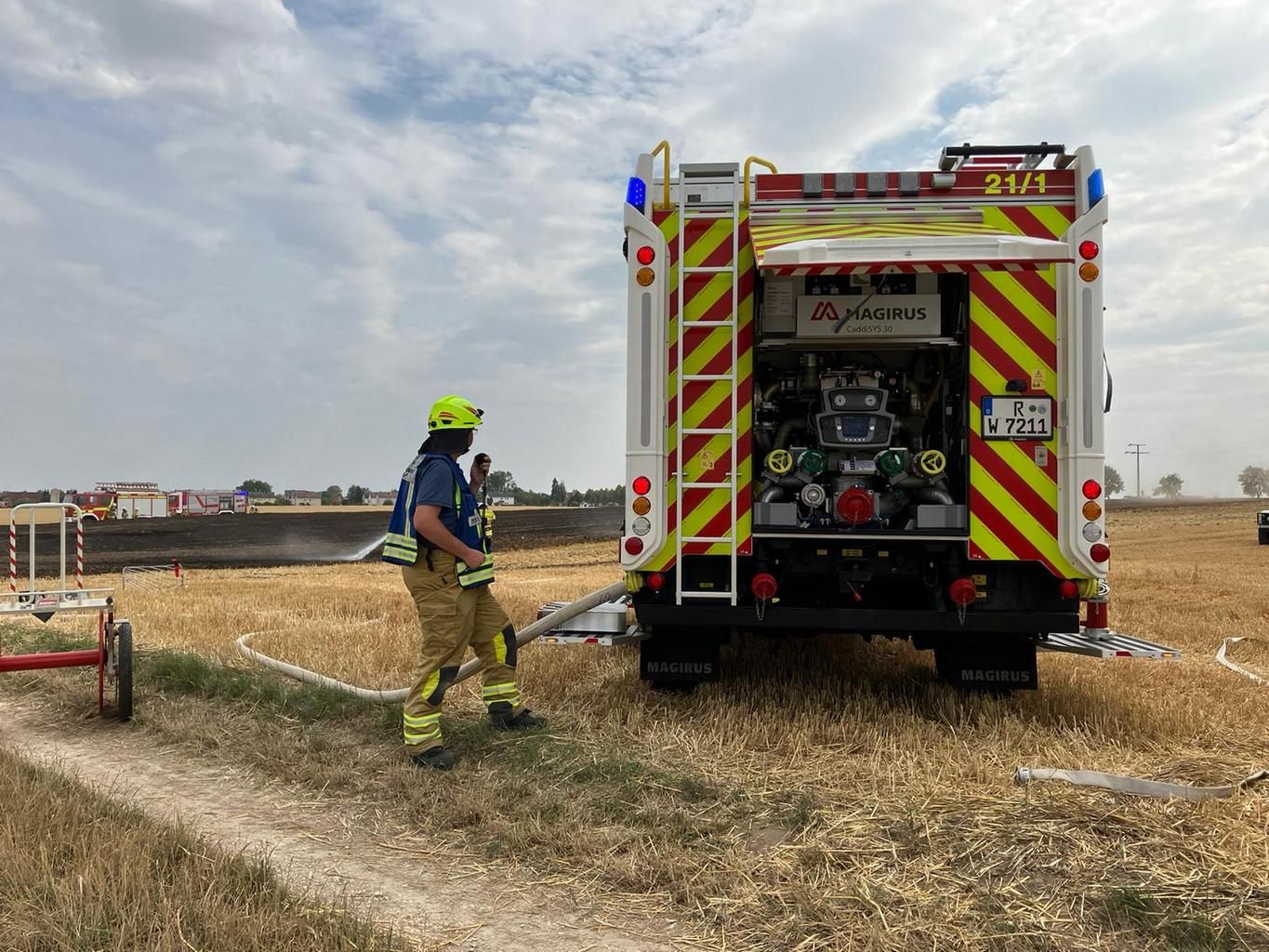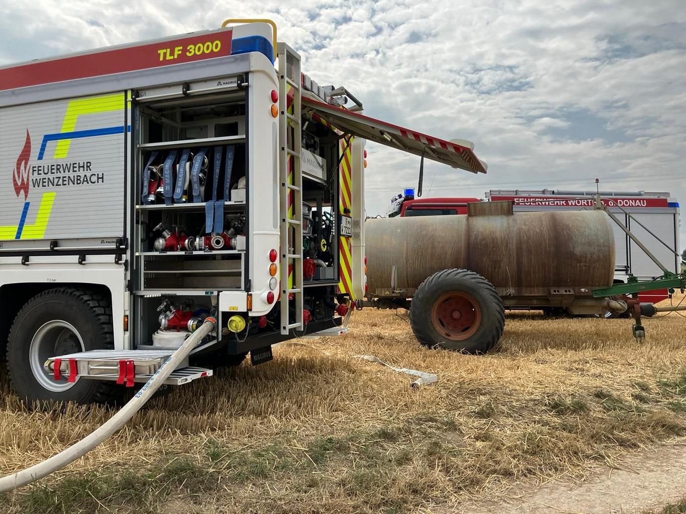 Ein Stoppelfeld zwischen Rosenhof und Mintraching ist in Brand geraten. Unser TLF3000 unterstützte bei den Nachlöscharbeiten im Bereich der linken Flanke. Dazu lieferten wir das benötigte Wasser und gingen den anwesenden Kräften der Feuerwehr Mintraching zur Hand. Wir setzten ein weiteres C-Rohr ein, um den bereits abgelöschten Teilbereich weiter zu kühlen, letzte Glutnester zu beseitigen und so ein eventuelles Wiederaufflammen zu verhindern. Ebenfalls wurde unserem Abschnitt noch ein Löschfahrzeug der Feuerwehr Wörth gestellt.