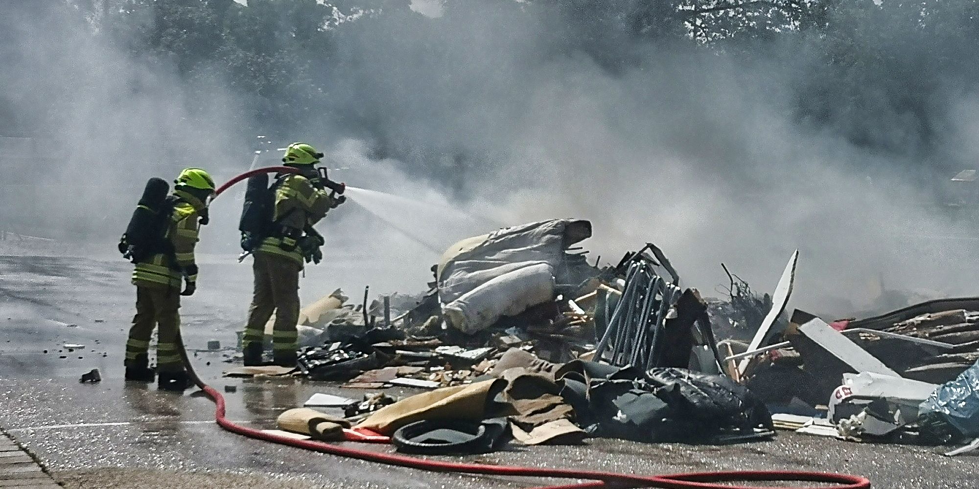 Vor Ort angekommen galt es zunächst den LKW schnellstmöglich abzulöschen. Ein Trupp unter Atemschutz nahm dabei ein C-Rohr vor und konnte so größeren Schaden verhindern. Anschließend wurde mit zwei C-Rohren der brennende Haufen abgelöscht. Ein Lader der Gemeinde unterstützte uns bei den Nachlöscharbeiten indem das noch schwelende Brandgut auseinandergezogen wurde, um besser an die Glutnester heranzukommen. Nachdem mit der Wärmebildkamera dann abschließend die Temperatur kontrolliert wurde, konnte "Feuer Aus" vermeldet werden.