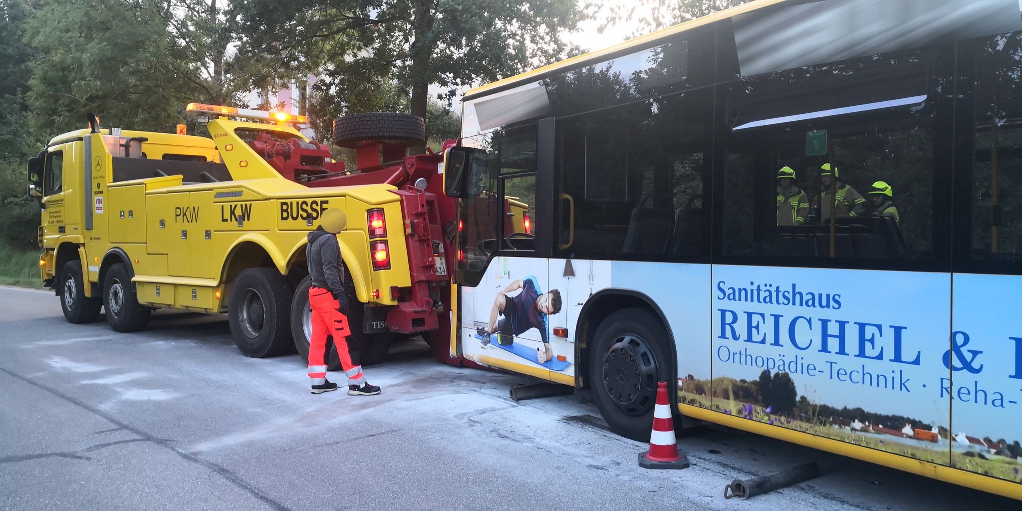 Durch die Wucht des Aufpralls kam es zum Bruch der Lenkachse, somit war der Bus nicht mehr fahrbereit und musste abgeschleppt werden.