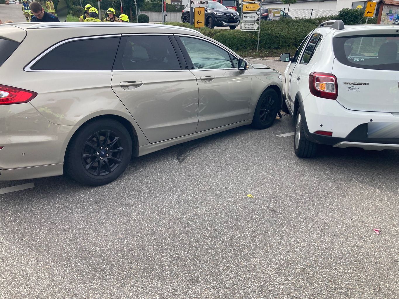 Wir wurden zusammen mit der Feuerwehr Hauzenstein in die Regensburgerstraße zu einem Verkehrsunfall mit zwei beteiligten PKW im Kreuzungsbereich beim Pennymarkt gerufen. Aufgrund der Erstmeldung waren in ihrem Fahrzeug eingeschlossene Personen zu befürchten, darunter auch ein Kind. Dies führte zur Alarmierung vieler Einheiten des Rettungsdienstes, auch der Rettungshubschrauber "Christoph Regensburg" wurde hinzugezogen.