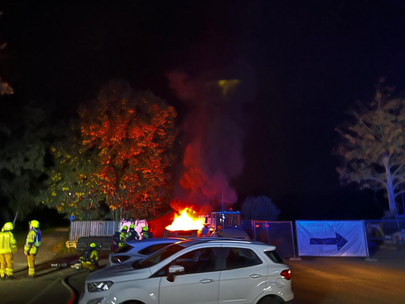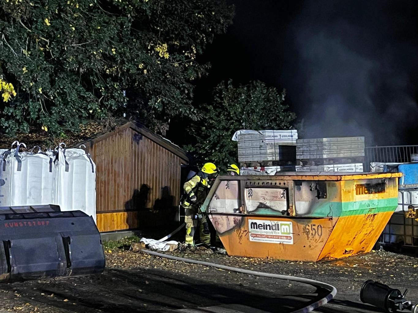 Auf dem Parkplatz am Jahnweg geriet der Inhalt eines Abfallcontainers einer Baufirma in Brand. Durch die unmittelbare Nähe zu einer Holzkonstruktion des Sportvereins, einem Baum sowie dem Radlader der Baufirma bestand durch die große Hitzeeinwirkung die Gefahr der Ausbreitung. Dies konnte durch den Einsatz der Feuerwehr verhindert werden. Der Brand wurde gelöscht und der Container mit Schaum gefüllt, um ein Wiederaufflammen zu verhindern.