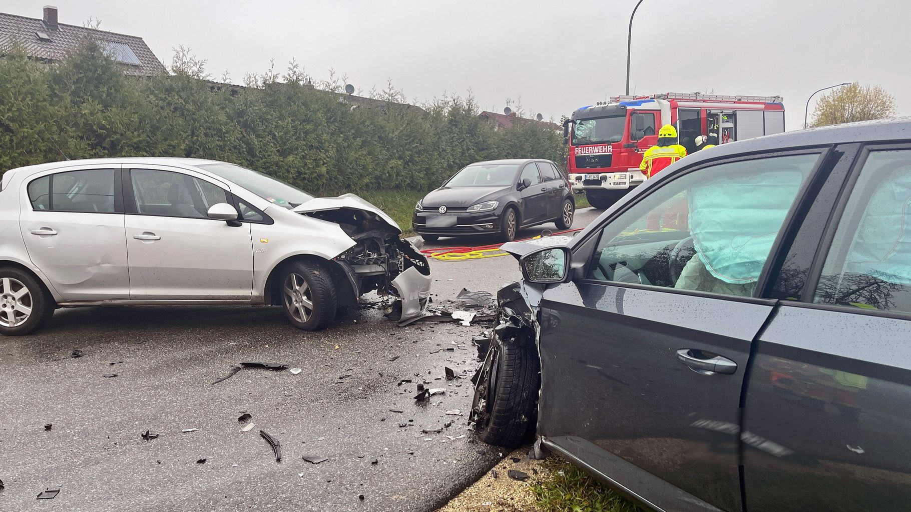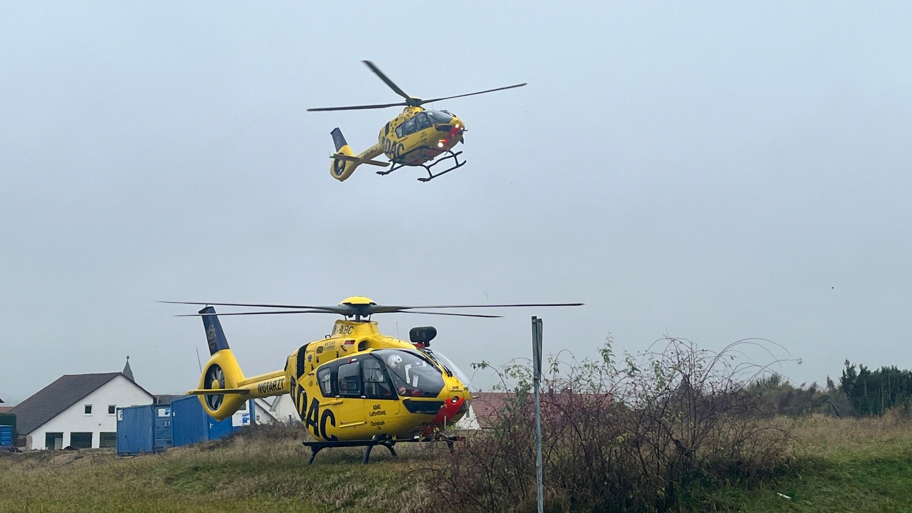 Beim Zusammenstoß zweier PKW wurden fünf Personen verletzt. Neben den Rettungsfahrzeugen waren auch zwei Rettungshubschrauber vor Ort.