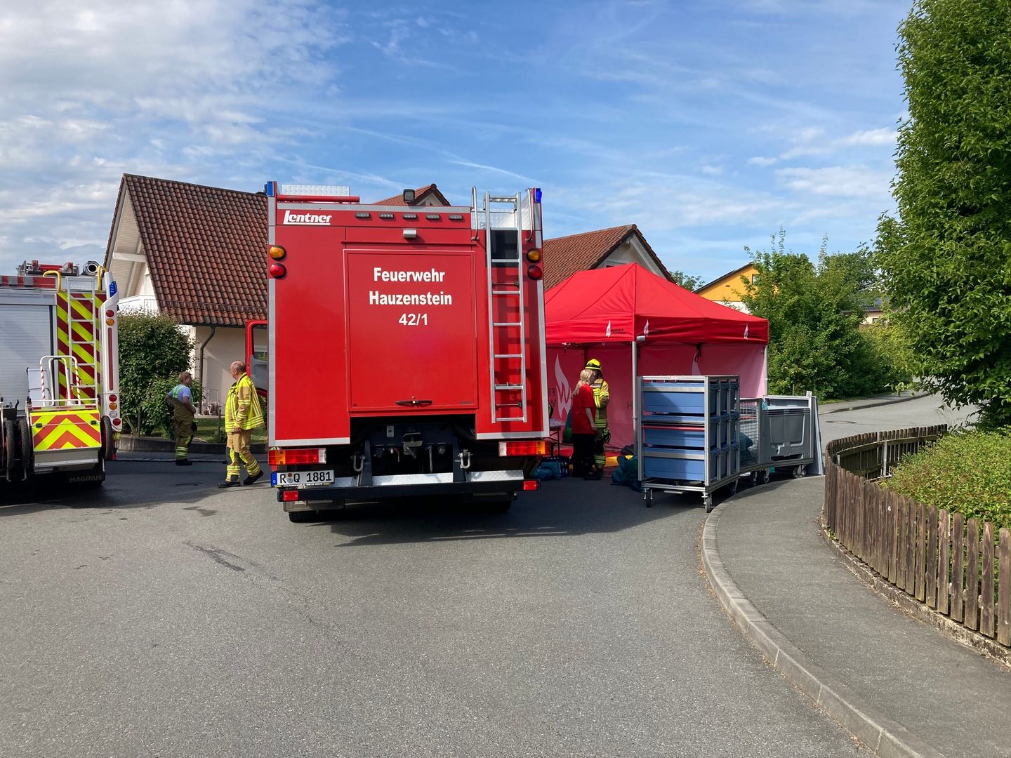 Bei unserer Ankunft bestätigte sich die Rauchentwicklung. Im Untergeschoss konnte ein Feuer ausgemacht werden, das aus bisher unbekannten Gründen ausgebrochen war. Ein Atemschutztrupp der Kameraden aus Grünthal löschte den Brand, während sich ein Trupp aus Wenzenbach davon überzeugte, dass sich im ebenfalls stark verrauchten Erd- und Dachgeschoss keine Personen mehr befanden. Die Einsatzleitung lag bei den örtlich zuständigen Kräften der Feuerwehr Hauzenstein.