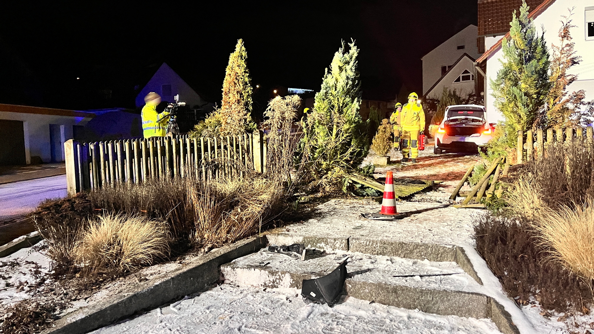 Laut Einsatzstichwort prallte ein Pkw gegen eine Hauswand und eine Person sei noch im Pkw eingeklemmt.